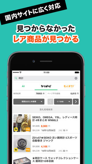 商品の相場を調べるなら『オークファン』! ヤフオク!を始めとした各オークションサイトから、みんなの落札価格を知って賢くフリマやオークションを楽しもう! 国内の主要なオークションサイト ・「ヤフオク!(Yahoo!オークション)」 ・「モバオク」 から、落札相場をかんたん検索できます! ※「楽天オークション」検索は現在機能を停止しております。 ================= ■オークファンの特徴 ================= ・月間1500万人がサービス利用! ・ヤフオク!モバオク!などの人気オークションサイトから相場比較が可能! ・過去10年間、300億件以上の商品・価格情報が…