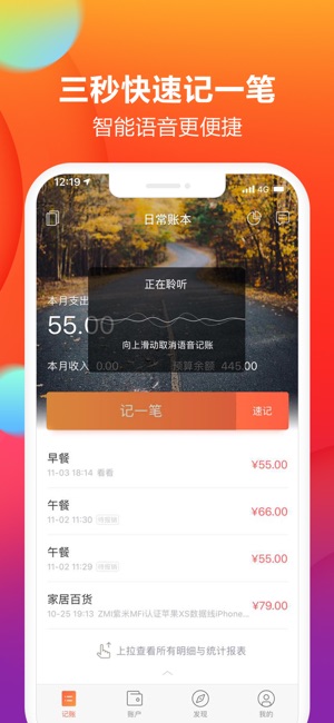 爱记账,会生活,和小伙伴一起开始记账吧 做您贴心专业的资产管家,专注管好每一分钱 【丰富功能,简单记账】 1.极速记账:常记的工作日午餐,定制个速记模板,只要填个金额,3秒搞定记一笔 2.语音记账:简单说句话,“打车花费25元”,金额、类目、备注自动生成 3.拍照记账:外出旅行,选择拍照记账,把照片装进账单里,让好心情常伴左右 4.自动记账:轻松同步淘宝、银行卡、信用卡账单,只要五分钟,理清1年账,安全高效 5.周期记账:房贷车贷等规律账单,记录一笔周期账,一次记录,每月自动入账,超级省心 【清晰图表,轻松查询】 1.明细丰富:消费清晰,类目详尽,条条收支清晰查看,看账、查账都很方便 2.报…