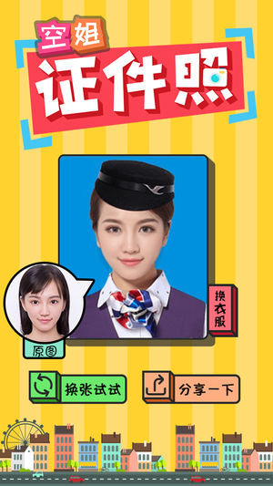 空姐证件照是小学生证件照系列中新产品,现在你可以穿上空姐制服,变身空姐了。 它是一款很有趣的应用。你可以用一张现在的照片,程序自动为你生成你穿上空姐制服是的照片,简直美翻了。 应用使用先进的人脸识别技术,对你的照片进行一定的美化,变形,让你一秒变身。应用生成的照片是根据使用者的样貌信息, 所以绝对是非常相似的。而且非常可爱漂亮,快用它来萌翻你的小伙伴吧!