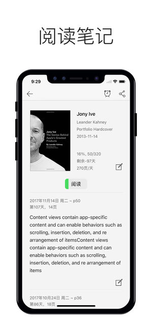 需要一个简单的工具帮助你有计划的把书读完。 珍惜手边的每一本书,每放弃一本书都是对自身灵魂的亏欠。 1)一本书很难坚持读完? 帮助你有计划地读完一本书,实时查看进度并接受提醒 2)同时读很多书? 帮助你跟踪记录同期阅读的多本书的进度 3)书读完过一阵子就忘了? 帮助你记录读书笔记,随时翻看和分享 –––––––––– 功能 • 扫码ISBN或者搜索书名自动添加阅读计划,或者放置想读书单,以备日后阅读。 • 设置好书的页数以及几日内读完,App 会自动计算出每日需要阅读的页数并随着阅读情况进行更新 • 支持每天添加阅读进度和简易的读书笔记 • 同一 iCloud 账号下所有 iOS 设备之间…