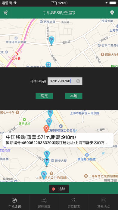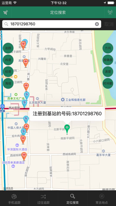 限时免费,机会不容错过! 这是一款搜索手机号码与基站的联系,基站信息采用最新保密服务器,运用最新的基站关联算法使得信息更及时准确。软件具有如下的特点: 1,基站信息,软件通过服务器搜索手机号码与手机运营商基站之间的关系,提供移动、联通、电信全国500多万基站信息。 2,卫星追踪,实时跟踪并显示目标的轨迹;你可以在普通地图和卫星地图之间切换;自定义追踪:你可以不限于默认的跟踪,你可以自定义轨迹,自定义轨迹可以不受时间限制,随时追加纪录;建立监控点:你可以设置多个监控点,当你打开记录器,目标接近监控点(或者监控点附近的基站)1000米、500米、50米时,系统会给出声音和文字提示,当程序处于后台运行时,系统也会给出语音提示; 3,显示轨迹,显示已经纪录的追踪轨迹,并能显示起点和终点信息;你可以通过自定义追踪或者日期来选择追踪轨迹,并能删除已经存在的轨迹;你可以在地图上画上属于自己的标记或者其他信息,并能保存到照片库或者发送电子邮件; 4,搜索位置,系统会根据准确度来显示搜索结果,并提供纬度、经度、准确度、海拔高度、方向、速度、时间的精确搜索;搜索结果提供普通和卫星两种地图显示模式;你可以在地图上画上属于自己的标记或者其他信息,并能保存到照片库或者发送电子邮件; 5,常去地点,系统会根据不同的条件来显示目标长时间停留的地点;追踪轨迹可以选择全部轨迹和自定义轨迹;时间间隔可以选择半小时、1小时、2小时、4小时、8小时移动的距离可以选择系统提供的数值,你也可以自己输入数值; 6,对于中国大陆地区GPS信息出现偏移的问题,系统做了特殊纠偏功能,可以正确显示精度为5-50米的GPS地图位置。