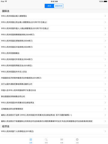 法律大类一览: 国际法、行政及行政诉讼、经济法、民法、民事诉讼及仲裁、商法、司法制度及法职、宪法、刑法、刑事诉讼 收录了300多部中华人民共和国法律法规,全部免费开放浏览!便捷的分类浏览操作,快速索引定位,书签收藏! 适合法律专业者随身查找使用,比如律师,法律学者,法律专业学生,公务员考试等。