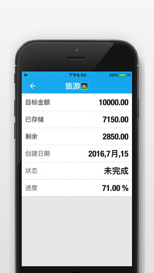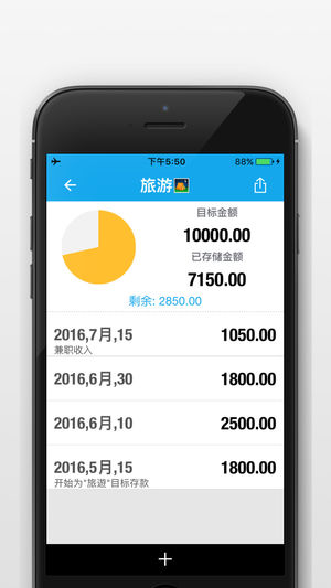 SavingsGoals - 跟踪、管理自己的储蓄目标! SavingsGoals 以最简单的方式完成自己的目标! 根据自己的需要,只需设定好储蓄目标,不断地添加自己可支配的资产,只需要关心储蓄目标的进度、 未完成的金额。 - 直观简洁、一目了然 - 储蓄目标分为两种:已完成的目标 & 正在进行的目标 - 每个储蓄目标,都有进度条百分比(%)、剩余未完成的金额、已存储的金额 - 详细的储蓄目标分析 - 设置好一个储蓄目标,并直观地看到自己的进度百分比 - 可翻阅所有的存款记录,知道自己是如何保存的,记录的清清楚楚 - 饼图可显示自己的最新(完成与未完成)的储蓄目标 - 无限制的储…