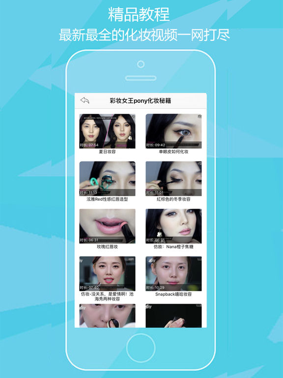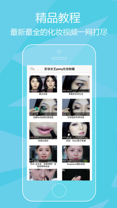 本软件为初学者必备的化妆App,在这个看脸的世界,姑娘们必须要学会化妆。就算不为了别人,为了自己,一张精致妆容的脸,也会带来愉悦的心情与自信。 ******功能简介****** 【化妆技巧】 各种时尚妆容的分解步骤,再也不用羡慕别人化妆化的好,跟着一步步教学,下一个彩妆达人就是你。 【流行彩妆】 这里有当季最流行的彩妆和明星妆容资讯,睁大眼睛看看她们都是如何变美丽的。 教你学习各种化妆技巧:画眉,眼影,眼线,腮红,唇妆,面试妆,职业妆,女神范,青春妆,烟熏妆,舞会妆等等应有尽有 变漂亮,就从一个美美的妆开始! 记住,世上没有丑女人,只有懒女人!