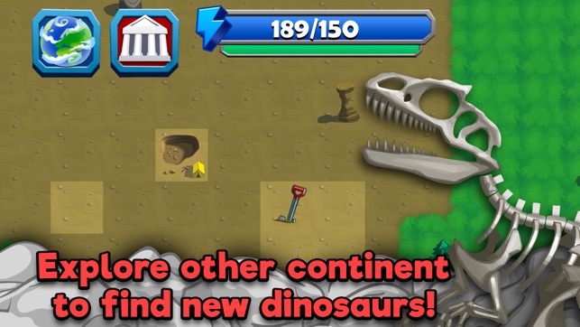 在Dino Quest中发现恐龙的奥秘!探索不同的大洲,找到数百万年历史的化石,并将他们添加到您自己的博物馆收藏中。凭借准确的信息和精彩的游戏操作,Dino Quest是为每一个恐龙迷精心打造的应用程序。 “Dino Quest是包含难题和策略的令人兴奋的探险。是扫雷和战舰游戏的组合。” “古生物学从来这么有趣过。每一个恐龙迷都必须拥有。” “适合所有年龄层的科学和趣味,Dino Quest是我最喜欢的游戏之一。” 拿起工具,让我们开始吧!首先选择一个要探索的大洲:非洲,亚洲,美洲,澳洲或欧洲。在每一个大洲,您可以找到实际住在那里的不同恐龙化石的遗址。使用策略和特别的工具,从正确的砖块开始…