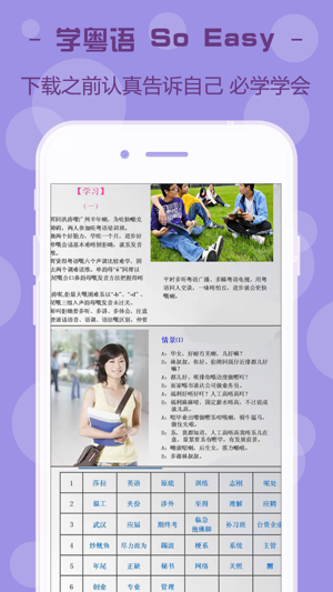 我们专为粤语学习需求用户服务,已获全球数百万人青睐 钢铁锅,含眼泪喊修瓢锅.坏缺烂角的换新锅瓢乱放。 风雨里追锅,无泪缝把层烟囱,铁锅还扩内雨窝,锅会病。 特点功能 1. 丰富的粤语学习素材: 内涵粤语常用必备词汇、港产片经典对白、粗口、谐音,旅游等各类专题资料。配以标准示范读音,对应音标与普通话翻译。让你学得轻松,学得正宗! 2. 创新的教学模式 每课均有闯关模式,分难度进行,达到目标方可进入下一关。娱乐学习,想知道自己的粤语水平,快来看看自己闯了多少关吧。 3. 循序渐进的学习方法 从易到难,从词到句。每一课每一关,均由专业老师精心排编,易上手,适用于各个层次的粤语学习者。 4. 优质…