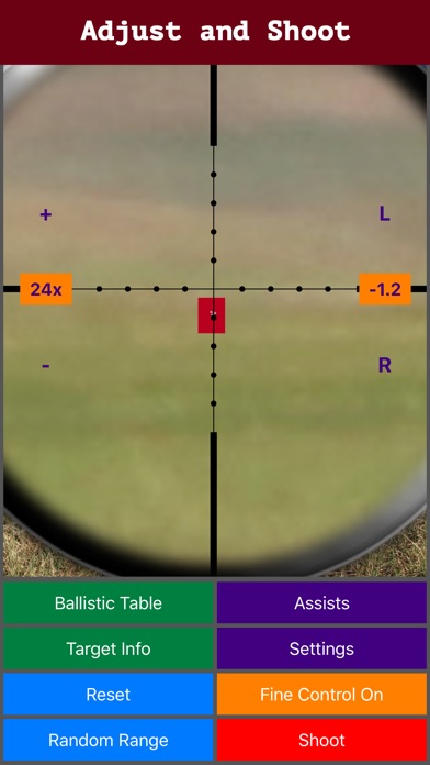 Hit long range shots with realistic ballistics and varying conditions. This simulator is not a game. This app helps rifle shooters understand and practice the use of the mil-dot scope, and visualize how different conditions such as wind, temperature, and ballistic coefficients affect bullet performance. It also illustrates some of the challenges faced by long range shooters. This is a very accessible app that provides practice at home or on the go for shooters of all skill levels. Two scopes are available at this time. A first focal plane, and a second focal plane. The first's reticle scales to each magnification setting; the second scales to the maximum zoom, like the real thing. This is the metric version. For the inch/imperial version, please check my other apps. Features: • Fully functional mil-dot scope. Practice ranging and adjusting for windage, elevation, and holdovers. More reticles coming. • Realistic ballistics. The app's engine includes a real 3DOF calculator for authenticity and accessibility. You can also use your favorite ballistic calculator like JBM or tools like Mildot Master. • Use your own ammo. Use data from your favorite ammunition or custom loads from .22LR to .50 BMG. • Set your own conditions. Use it as a ballistic diorama and try shooting at different temperatures, wind conditions, altitudes, and more. You can see how these conditions affect your shot and create challenges. Range goes up to 1200 meters. • Use your own target pictures or download them off the internet. Load them from your camera roll. • Randomizer. Try your skills at randomly generated conditions. How many hits with your first shot can you get in a row? • Assists. They will help you calculate and remember the ranging formulas, in case you don't have a calculator or pen/paper handy. More features and scopes coming soon. There are many great resources on the internet that explain how to use mil dot scopes. You can practice them here without using live ammo. Try using the randomize function to get more varied practice, or play around with different settings to see how they affect shooting.