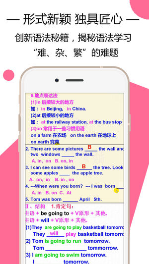 英语语法轻松学 这是一款让你爱上英语的软件 本软件通过英语语法的视频讲解,拆解英语语法的精髓, 让你掌握学习英语的诀窍。 软件内有丰富的英语视频发音,初级中级等多个层级的视频教程, 让你学习英语循序渐进,坚持使用本软件让你英语能力大有提升 应用特点: 内容详尽 操作简单 使用方便 是您学习英语语法,提升英语水平的不二之选。