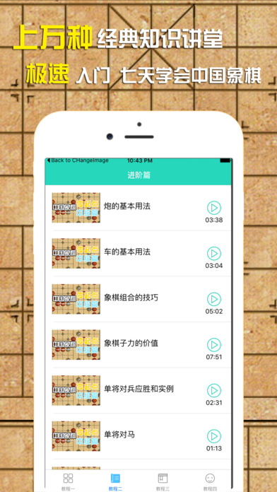 中国象棋是国内流传十分广泛的游戏软件之一。下棋双方可根据自己对棋局形式的理解和对棋艺规律的掌握,调动车马,组织兵力,协调作战。 本应用精心收集了一些象棋视频教程。 希望喜想学象棋的你可以跟着教学视频一起学,祝大家早日学有所成!