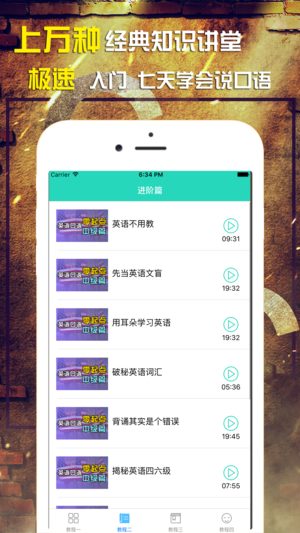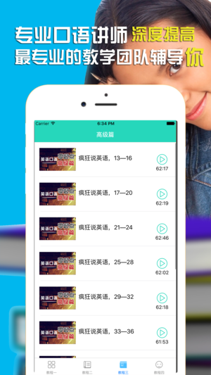 什么方法学口语最有效?口语详细教程帮您用最正确的方法学好口语,让你“忍不住开口说英语”! 【玩配音学英语】 看视频学英语,跟着原片玩趣味配音。还有详细的语音讲解,体验英语学习新方式。 【“懂你英语”核心课程】 根据你的英语水平量身定制系统化课程,不背单词,不学语法,也能全面提升听说读写。 【系统的内容编排】 每日更新地道实用的英语对话,带动口语、单词、语法、听力、阅读等能力的全面提升。 【丰富的学习素材】 课程内容覆盖日常会话、商务职场、旅游出行,校园生活等各类场景。 【会打分的口语外教】 内置来自硅谷顶尖语音识别技术,给你的英语口语实时打分,矫正发音。