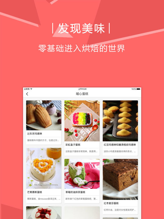唯烘焙与爱不可辜负 喜欢烘焙,不只是为了品尝美好的食物,它们饱含着我们制作过程中倾注的爱,对生活无限的热爱。 零基础入门,为您提供优质而健康的烘焙食谱 图文讲解,详尽步骤和贴心提示助您做出美好的
