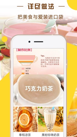 本应用收录了奶茶的做法,让你在品味奶茶纯香的同时,也能收获到健康! 特色说明: 1.天然新鲜、科学营养、健胃润肠。 2.没有奶茶机也没关系,完全手工制作,方法简单,无需添购设备。 3.最全面详细的配方,从经典款到创意设计,奶昔、酸奶、、 4.搭配数百余幅步骤图,分步详解饮品制作过程,让这个夏天与众不同! √图文并茂,简单易学! √种类繁多,原料易买,做法详细,版式、图片精美! √完美的分享功能,让你分享美味给你的亲朋好友!