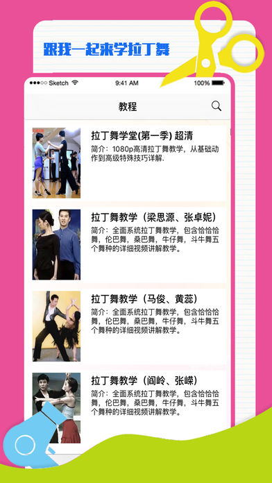 国际标准拉丁舞是规范、严格、标准的,它是在拉丁舞的基础上发展规范形成的竞技专业舞蹈。 拉丁舞有五个舞种:伦巴、恰恰、桑巴舞、牛仔舞、斗牛舞。拉丁舞的五项舞蹈各有风格,桑巴的激情,恰恰的活泼,伦巴的婀娜,斗牛的强劲,牛仔的逗趣。 风格的不同,最主要的是内涵的把握。 本APP包含了五个舞种的详细视频教学,跟随不同的老师,学习自己的风格吧!