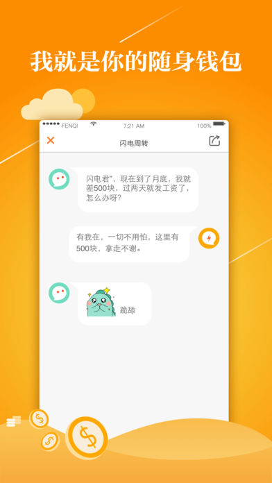 【Pro版用户享有优先审核权!】 【闪电周转—您的随身应急钱包:专为年轻人量身打造】 每到月底、临时请客、恋爱基金……在每一次您需要的时候,我们都在您的身边。 500~1000元周转资金,极速审核、极速放款、通过率高,我们就是您的随身钱包! 我们用认真、专业的态度面对每一位需要帮助的“您”——在需要时,我们总在您身边。 【功能特点】 1. 简单资料:只需提供您真实的身份信息、和手机号; 2. 步骤清晰:流畅的APP操作体验,随时掌握当前步骤进展; 3. 极速到款:将用最快的速度为您审核、放款,让您满意就是我们的唯一宗旨; 4. 隐私保护:我们对您填写的一切资料进行加密保护,没有任何后顾之忧; 5. 还款便捷:还款提醒服务,一键还款,随时掌握账单情况。 【团队介绍】 闪电周转团队集合了外企服务多年的高管人士、国内外著名大学毕业的专业技术人才、以及银行服务多年的资深顾问。 立志将国外先进的金融生活方式引入中国,在国内“普惠金融”起步初期,为社会贡献自己的一份力量。 产品上线同时即获得国内顶级天使投资。此后稳扎稳打,不忘初心。 【联系方式】 有任何问题,请不要犹豫,我们客服妹纸随时欢迎您的咨询。 官方网站:http://www.sdzz.la 官方微信:闪电周转 微信号 :shandianzhouzhuan 客服电话:4008780213 用户QQ群:532814080