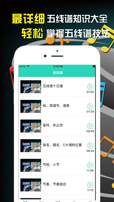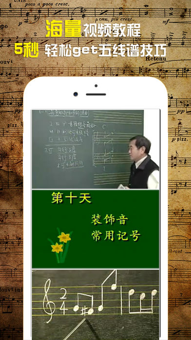 五线谱从入门到精通,三天轻松掌握五线谱,全新五线谱快速识谱训练,助你快速学会五线谱识谱。 希望真心能帮到大家。最后希望大家多提建议,众志成城,很赞的音乐学习APP。 祝君音乐道路一帆风顺!