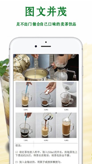 本应用收录了奶茶的做法,让你在品味奶茶纯香的同时,也能收获到健康! 特色说明: 1.天然新鲜、科学营养、健胃润肠。 2.没有奶茶机也没关系,完全手工制作,方法简单,无需添购设备。 3.最全面详细的配方,从经典款到创意设计,奶昔、酸奶、、 4.搭配数百余幅步骤图,分步详解饮品制作过程,让这个夏天与众不同! √图文并茂,简单易学!