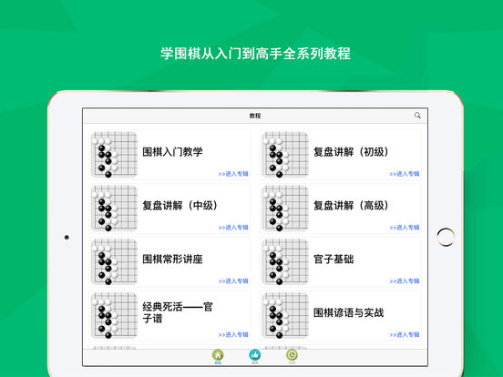 包含大量围棋教学视频!从入门到九段大师!样样齐全! 界面精美!教学讲解通俗易懂! 让你快速开启围棋之路! 天天下一盘围棋游戏! 解密残局奥秘,围棋练习宝典,少儿学围棋的好帮手,从零开始学围棋,从入门到九段精通全部教程应有尽有,快来开启你的围棋之路吧!轻松入门,忘忧忘愁!