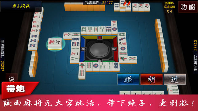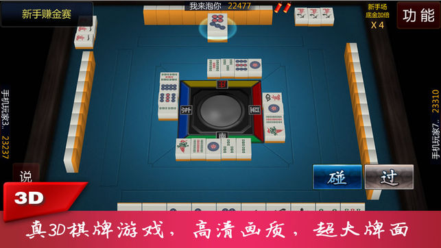 筒条万共108张牌 可碰可杠,不能吃 庄家:第一盘骰子决定庄家,之后谁胡谁当庄 黄庄:剩余5墩黄庄 胡牌:可自摸和点炮,自摸三家出,点炮一家出 牌型:仅有平胡,1个 杠牌:胡牌玩家如果有杠牌,在胡牌基础上增加相应点数,有多个杠时可累加 明杠:+1个 暗杠:+2个 抢杠:算点炮 下炮子:在开始摸牌前,大家首先选择本盘是否下炮子,胡牌后,自己和他人的炮子数相加,再加上胡牌和杠牌的点数,等于最后的得分数。