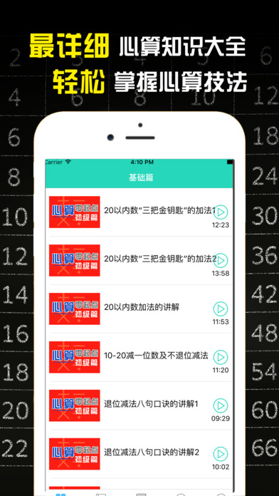 这是一个全面快速学习关于心算知识的应用程序,这个程序皆旨在帮助您快速掌握重要的这个领域需要其他人许多年才能学习的精髓要素。 内容包括万以内的快速加减乘除法则,名师总结多项加减乘除规律,多项加减乘除快速心算,认真学习,你也可以使是数学天才。 * 我们精挑细选专家视频教程,可以更广泛地对该领域中的重要课题和要领有更深入的了解。