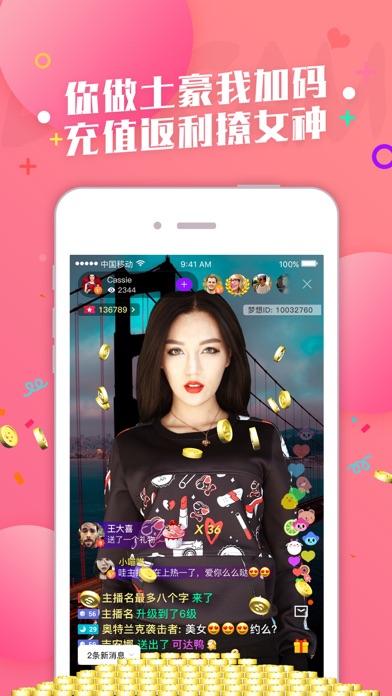 自带光芒的娱乐造星平台,只要有梦想敢show,网红网星你就是大咖! 【型秀成星】造星活动集结来战,快乐男声,梦想星计划,为你的梦想搭建光芒四射的舞台! 【超萌礼物】独家立体萌趣礼物特效,男神女神爱到星星眼 【免费星光】星光任务免费币,专属礼物上线,完成任务,用心送主播真爱表达 【美颜特效】天生丽质,自带美颜,好玩又有料,主播都爱 【记录视频】用照片与视频记录梦想,心路历程,分享每一份执着感动 【小提示】 若有任何关于梦想直播体验及功能上的反馈建议,请联系我们,官方客服QQ: 2129668693 欢迎关注梦想直播订阅号,最新最快最好玩的内容尽在其中,公众号:dreamer-live