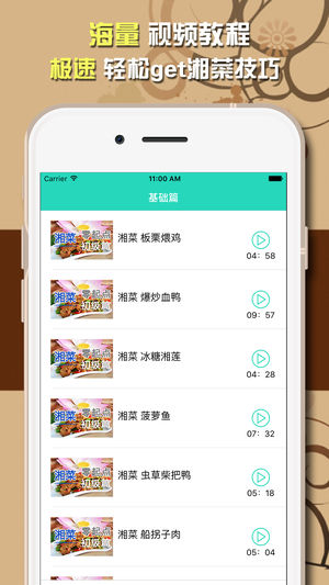 湘菜,是中国历史悠久的一个地方菜。是汉族饮食文化八大菜系之一。 湘菜历史悠久,早在汉朝就已经形成菜系,烹调技艺已有相当高的水平。湖南地处我国中南地区,气候温暖,雨量充沛,自然条件优越。湘西多山,盛产笋、蕈和山珍野味;湘东南为丘陵和盆地,家牧副渔发达;湘北是著名的洞庭湖平原,素称"鱼米之乡"。 在《史记》中曾记载了楚地"地势饶食,无饥馑之患"。湘西菜擅长香、酸、辣,具有浓郁的山乡风味。 特色功能: ①图文并茂,简单易学! ②完美的收藏功能,让你更方便的使用! ③完美的分享功能,让你分享美味给你的亲朋好友! ④搜索功能让你快速找到想吃的菜谱。 ⑤附带有各种小Tips, 每天有不同的惊喜。