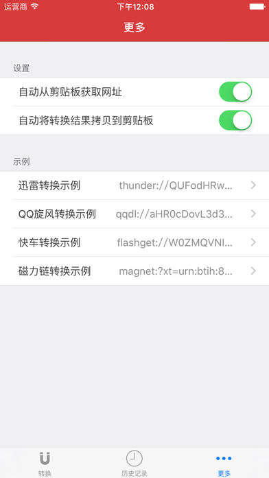【简介】 - 是否在手机上收到了迅雷、QQ旋风、快车和磁力链的链接,还需要安装专门的应用才能使用? - 有了“链接工具箱”,就可以把这些链接转为真正的链接,轻便好用! - 【功能介绍】 - 自动将迅雷、QQ旋风、快车和磁力链的链接转换为真实的链接 - 支持打开应用,即自动从剪贴板识别链接