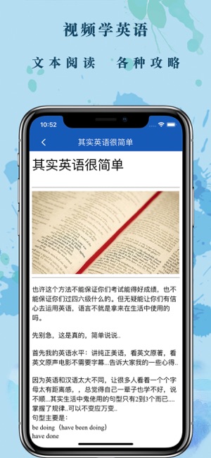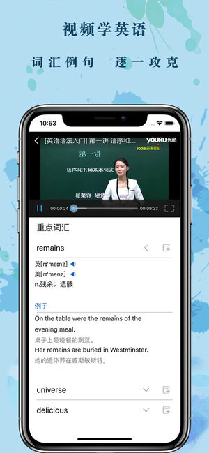 看一部美国影视胜过在美国生活十天。我们没有英语听说的语言环境,但可以通过看英语视频来创造一种“习得听说”的英语语言环境,使自己如身临其境般学到纯正地道的英语。 无论你是英语学习的初学者,还是英语学习遇到瓶颈的学生,视频学英语都能满足你的需求,这里有丰富的英语教学视频,针对不同阶段的英语学习者,提供了涵盖记忆、语法、口语等英语学习重点方面的学习技巧。更有双语阅读和英语技巧阅读模块,多角度多方面的帮助你学习英语,让我们一起来看视频学地道的英语吧!