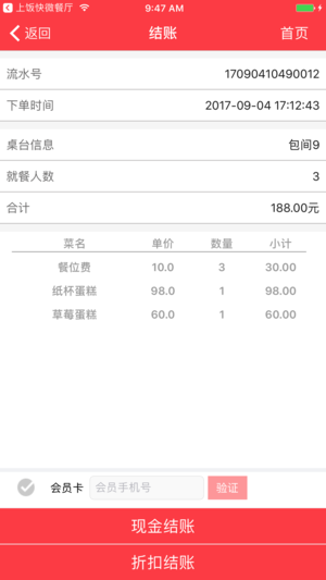 手机管餐厅,上饭快!不用再买点餐收银机了,只要手机就行!装个上饭快APP,配个蓝牙打印机,就能打单,配个网络打印机就能厨打传菜。方便快捷,便宜好用!更有丰富功能,欢迎下载体验! 本高端版可直接店内使用,也适合餐厅老板随时随地查账使用,也可以授权多个服务员替代点菜宝使用。提供开单点菜、结账收银、加菜退菜、预订处理、小票打印、后厨厨打、营业统计、会员管理、移动支付收款等餐饮管理必备功能。 上饭快是一款餐饮管理APP,集合专业的餐饮点餐收银系统。基于先进的移动互联网云服务,上饭快管家为餐饮企业提供快速点餐、收银、打单、厨打、订单管理、数据统计等餐厅日常经营所涉及到的各种基…