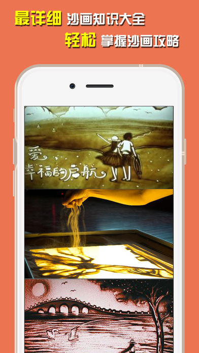 喜欢沙画吗?晴朗的天气,和煦的微风下,画一幅沙画,追寻不一样的浪漫。 本app精挑细选沙画大师视频教程,可以更广泛地对该领域中的重要课题和要领有更深入的了解。搜集了来自专家和专业人士的经验和技巧,让你更快的掌握沙画技巧。