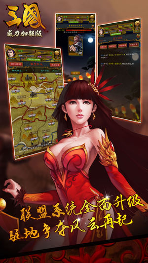 《三国威力加强版》:聚义好兄弟,痛快战三国 “征战经年梦三国,群雄助阵霸天下!“《三国威力加强版》是CMGE中国手游集团推出的一款三国题材大作,被称为是”国民级三国卡牌手游”。游戏汲取经典名著《三国演义》的世界观精髓,融合魏、蜀、吴、群雄四大阵营的故事设定,还原了上百个历史名将和经典战役,玩家能从游戏中得到极致的沙场争霸的竞技体验。 在最新版本中,游戏对战斗系统上进行了深度革新,加入了争霸、夺宝、公会战、龙脉探宝、跨平台竞技等创新玩法,以流畅华丽的画面、丰富多样的副本、爽快激情的战斗,其乐无穷的策略玩法,全面超越传统三国卡牌手游。驰骋沙场,热血不断,全新的三国征程,不战不痛快!