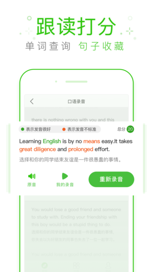 海量英语材料每日更新:最新的英语时事新闻、旅游英语、生活口语、商务英语、各大考试英语(小学、初高中、四级六级、出国考试)、英文杂志、英语播客 英语学习更有趣、更懂你 特色功能: 1.海量听力口语资源:新概念、名人演讲、听歌学英语、语法、英语新闻、商务职场、少儿英语等所有资源 2.支持离线使用:一键批量下载 3.英语精听泛听:中英对照字幕,支持多种模式听写练习 4.英语口语跟读:逐句跟读口语,采用教育部官方语音评分系统 5.音标练习:逐个矫正你的音标,智能对比练习 6.背单词:闭眼飘单词,各类单词音频加文本