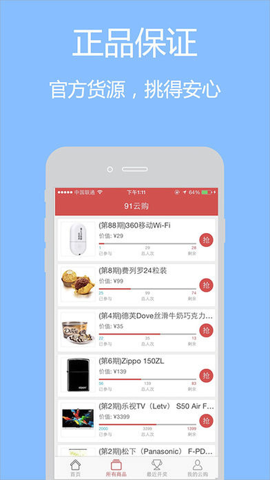 一元购物,一个众筹分期购物平台。 在零元购,你可以参与丰富的众筹分期活动,实现自己一元幸运获得热门潮流商品的愿望。 一元,把你没有的东西带回家。 【实现愿望,只要一元】 数百种新潮的商品,等待着你的到来! 只要一元,就能实现自己拥有的潮流商品愿望! 【公平公正透明的规则】 公平:所有参与用户,都享受同样的权利与义务。 公正:引入第三方数据源,保证众筹分配结果的随机性,保证绝对公正性。 透明:计算公式和相关数据完全公开。 【紧张刺激的等待过程】 一旦参与该活动,你就能体验到不一样的紧张刺激,更有机会享受到获得该商品的乐趣! 【和朋友分享喜悦】 快来看看别人在零元购分享的喜悦,已经有超过187521朋友进行了分享! (特别声明:本应用所有活动与内容跟苹果公司无关)