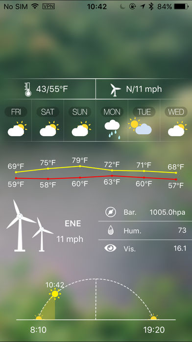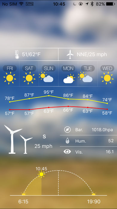 了解时时天气、方便您出行。 天气预报 for 7天预报 能够精准的预测未来7天的天气。 打开『天气预报』了解时时天气信息,您也可以在设置中设置推送天气、不用打开软件,每天会将你所需要的城市的天气情况发送到您的手机。 『天气预报』是一款精美的天气软件,能够预测未来7天气天气信息,界面以简洁清晰的直观效果给您带来最想要的天气预报,每种天气都以动画的形式表现。 第一次启动的时候,将会自动定位城市,如果定位不成功,您可以手动输入城市来设置需要查看天气的城市,在设置中,您可以添加多个城市。 每种天气类型都会伴随着底图的不一样,以及天气动画效果的不一样。 主界面上的数据都会时时的表现,如日出时间,日落时间都会随着本身时间的变化而变化 。