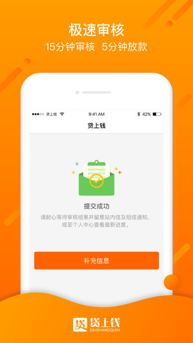 贷上钱—小额应急借款借钱软件,15分钟快速审核,2小时极速放款。让您借钱方便无忧。小额贷款不求人,缺钱就上贷上钱。 1.速度快:江湖救急,刻不容缓。15分钟快速审核,2小时极速放款。 2.申请简单:在线填写资料直接提交申请,全程线上申请,无抵押、无担保。 3.资料安全:通过国际通用的RSA非对称算法对用户资料进行加密。 4.低费率:低手续费秒杀信用卡。 5.门槛低:只要你有身份证,外加一部手机就能借款。 【联系我们】 客服电话:021-23570870 贷上钱微信公众号:贷上钱服务号