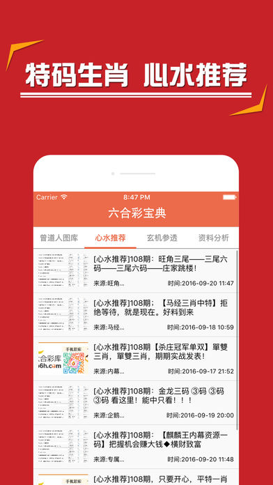 六合宝典是一款基于香港六合彩为内容,集淘料市场、历史开奖、统计资讯、推荐数据于一体的六合彩资讯应用。 六合宝典通过大量的数据,以及运用自主研发的分析六合彩的方法,率先实现了六合彩各种玩法的推荐。应用中的数据统计把特码、平码、波色、生肖等各玩法的历史以图标形式显示出来,用户可以查询到过往任何阶段的数据。六合宝典是具有资源占有低、操作简捷、数据齐全等特点,是目前国内最受欢迎的全能六合彩资讯应用之一。