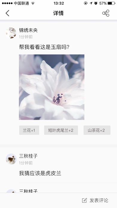 花伴侣——拍照识花利器;花草树木,一拍呈名。只需要拍摄植物的花、果、叶等特征部位,即可快速识别植物。花伴侣能识别中国野生及栽培植物上万种,几乎涵盖身边所有常见花草树木。 功能介绍 识别:只需拍照、选取照片或者从相册分享到花伴侣,即可快速识别; 分类:物种科属按照最新分子系统学成果,附有常用俗名,点击名称可进入植物百科; 鉴定:人工智能不能识别的植物可提交花伴侣识别; 分享:微信好友、朋友圈、QQ、QQ空间、微博等。 花伴侣是鲁朗软件(北京)有限公司利用人工智能深度学习技术,基于中科院植物研究所海量分类图库及用户共建图库开发的工具应用。随着用户的广泛使用,其识别能力还在不断提升,本产品由北京联星时代科技有限公司发布运营。 花伴侣尤其适合农业/林业工作者、植物爱好者、大中小学生及学生家长,无论您在街头、公园或者郊外游览,只需一拍照片就可以认识植物,让您在亲近大自然的同时,了解身边的植物和花卉,给您带来更多快乐! 花伴侣QQ群:607702772 官方微博:花伴侣拍照识花 微信公众号:花伴侣拍照识花 投诉建议:hbl@nongbangzhu.cn 官方主页:http://www.aiplants.net