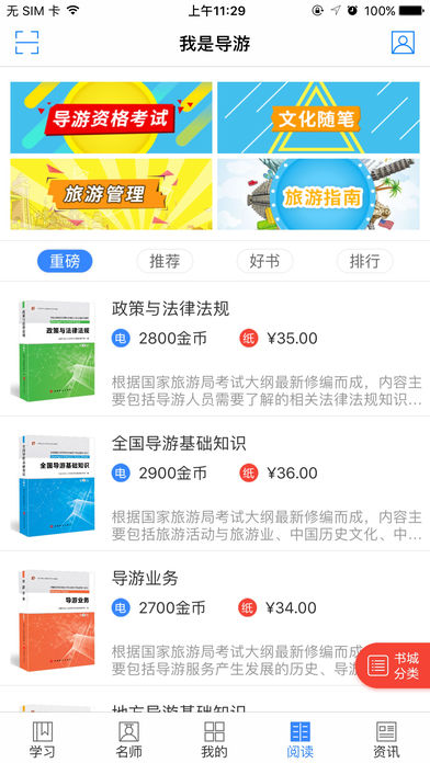 全国导考通关利器,“我是导游”APP已上线,为您呈现8大导考培训名师精讲视频课,4000多道紧扣考点的在线题库,导考专家编写的配套教材与题库汇编图书,涵盖英语导游能力考试考点的100个问答的实体图书,全方位、多形态,全力以赴助力考生顺利通关。