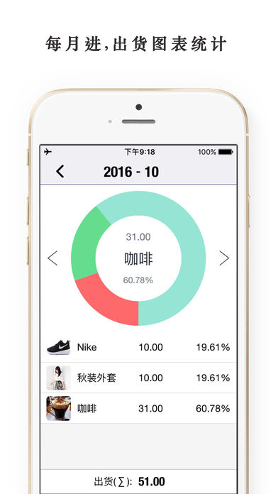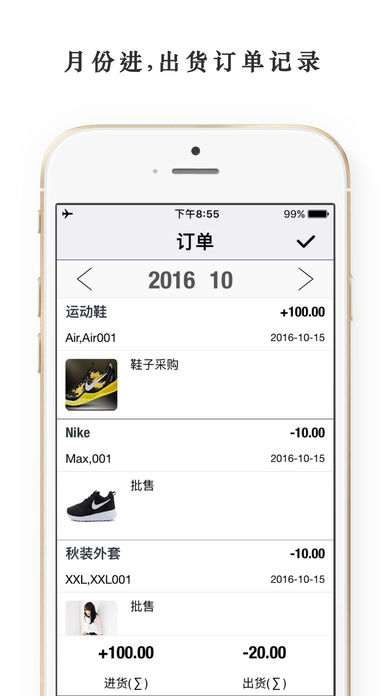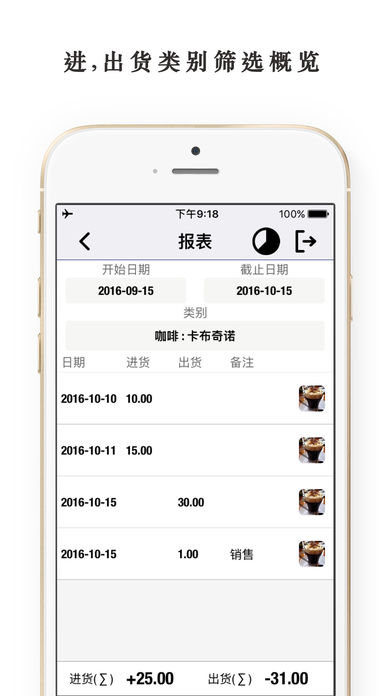 InvTaking(库存控制·盘点助手) 旨在帮助零售商跟踪手中的货品在进出货周期的库存,并可以在不同时间段进行盘点统计。记录/管理进出货库存,知道自己每天的生意如何。 InvTaking 被设计为一款轻量级,补充或替换高端销售系统的App。 -产品详情- 我们保持轻量级,只包括您的库存最必要的数据。这包括:日期,父子类别,名称,型号,Code,数量,图像和任何其他的自由形式注释字段。 -图片- 拍摄货品的图片,以便您可以从摘要屏幕中获得可视的概览。 - 自定义快速过滤器 - 创建快速过滤器可快速查看您感兴趣的货品库存,例如特定货品类别或选定日期。打开过滤器就能查看到进出货库存的数量,这对您很重要。 按数据,名称,类别和日期过滤。 特征: 1.货品项目列表(父类别和子类别)。 2.按货品添加库存。 3.按货品减少库存。 4.按货品和日期进行统计报告。 5.月份图表统计进出货。 6.导出货品库存excel。 7.手势密码保护。 8.进货汇总(Σ)和出货汇总(Σ)。 9.基于现在的功能上,我们正在开发更多的功能。 我本人作为卖家,我使用这个程序,由于它非常直观和易于使用,同时确保它是非常有用和高效的。