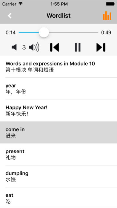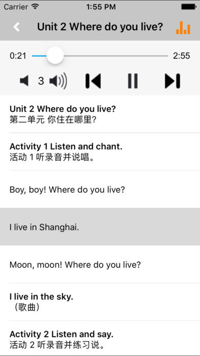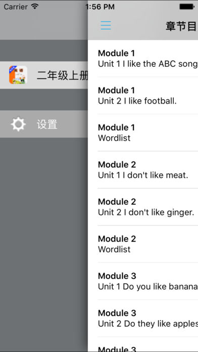 *外研版新标准小学英语“优学跟读”应用系列,易学易用,方便快捷。 *与教材完全一致,此应用为外研社新标准小学英语二年级上册(一年级起点)完全最新版。 *涵盖全部内容,包括全部课程对话和常用句子、单词列表、复习章节等。 *便于操作,自动播放,单词拼写强化训练。 “优学跟读”应用系列完全同步教材制作,内容完全一致,是一本十分方便的智能电子课本,该课本配有生动的语音,能随时随地帮忙孩子更好的学习。 该应用界面简洁操作简单,让孩子在舒适的环境下学习,能点,能读,更能说,是小朋友的好老师、好家长。 功能特色 ■中英文双语对照,同步语音,准确清晰。 ■内容与录音质量放心,地道纯正、原汁源味。 ■语音播放灵活,即点即学,跟读模仿随时随地。 ■完全同步教材制作,内容完全一致。 ■后台播放人性化,锁屏状态可随身听读。 ■界面简单大方,意图明了,功能实用,操作方便。 外研版新标准小学英语二年级上册“优学跟读”应用系列,根据外研社最新出版的课本配套,主要提供跟读功能。 让小学生中英文双语对照,发音准确清晰,是小朋友自学的好老师,把家长从繁琐的辅导解答中解放出来! “优学跟读”应用系列,快乐中学习,轻松点一点,英语真容易! *****软件功能***** 1.通用应用,同时支持iPhone,iPod touch,iPad设备 2.可以自动顺序播放功能 3.可以自动记录播放位置,不用担心下次找不到听到哪 4.支持离线播放,即使不联网也一样听,到哪都不怕 5.支持手动拖拽前进、后退播放 6.在兼顾软件容量以及更多课程的情况下,我们最大限度保证音频的高质量,每个有声读物片段都是经过我们精选和亲测 7.最最重要的功能,可以拖动字幕定位,音频随之定位 本应用与《义务教育课程标准实验教科书外研社新标准小学英语二年级上册》同步 新版目录: Module 1 Unit 1 I like the ABC song. Module 1 Unit 2 I like football. Module 2 Unit 1 I don't like meat. Module 2 Unit 2 I don't like ginger. Module 3 Unit 1 Do you like bananas? Module 3 Unit 2 Do they like apples? Module 4 Unit 1 Sam likes T-shirts. Module 4 Unit 2 He doesn't like these trousers. Module 5 Unit 1 At 7, I get up. Module 5 Unit 2 I go home at 5. Module 6 Unit 1 What do you do on Sundays? Module 6 Unit 2 Where do you live? Module 7 Unit 1 How do you go to school? Module 7 Unit 2 I go by train. Module 8 Unit 1 She goes swimming. Module 8 Unit 2 Does he play the piano? Module 9 Unit 1 It's winter. Module 9 Unit 2 What does he do in summer? Module 10 Unit 1 Happy New Year! Module 10 Unit 2 We have Christmas. Review Module Words and Expressions in Each Module Word List Words in Songs and Chants Places Reading for pleasure Project