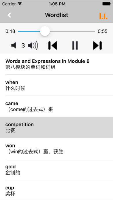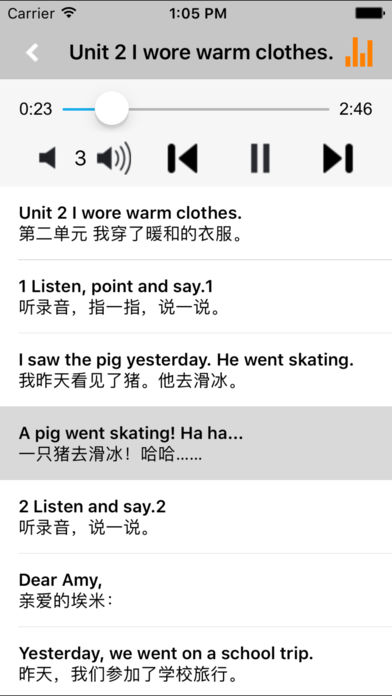 *外研版新标准小学英语“优学跟读”应用系列,易学易用,方便快捷。 *与教材完全一致,此应用为外研社新标准小学英语四年级上册(一年级起点)完全最新版。 *涵盖全部内容,包括全部课程对话和常用句子、单词列表、复习章节等。 *便于操作,自动播放,单词拼写强化训练。 “优学跟读”应用系列完全同步教材制作,内容完全一致,是一本十分方便的智能电子课本,该课本配有生动的语音,能随时随地帮忙孩子更好的学习。 该应用界面简洁操作简单,让孩子在舒适的环境下学习,能点,能读,更能说,是小朋友的好老师、好家长。 功能特色 ■中英文双语对照,同步语音,准确清晰。 ■内容与录音质量放心,地道纯正、原汁源味。 ■语音播放灵活,即点即学,跟读模仿随时随地。 ■完全同步教材制作,内容完全一致。 ■后台播放人性化,锁屏状态可随身听读。 ■界面简单大方,意图明了,功能实用,操作方便。 外研版新标准小学英语四年级上册“优学跟读”应用系列,根据外研社最新出版的课本配套,主要提供跟读功能。 让小学生中英文双语对照,发音准确清晰,是小朋友自学的好老师,把家长从繁琐的辅导解答中解放出来! “优学跟读”应用系列,快乐中学习,轻松点一点,英语真容易! *****软件功能***** 1.通用应用,同时支持iPhone,iPod touch,iPad设备 2.可以自动顺序播放功能 3.可以自动记录播放位置,不用担心下次找不到听到哪 4.支持离线播放,即使不联网也一样听,到哪都不怕 5.支持手动拖拽前进、后退播放 6.在兼顾软件容量以及更多课程的情况下,我们最大限度保证音频的高质量,每个有声读物片段都是经过我们精选和亲测 7.最最重要的功能,可以拖动字幕定位,音频随之定位 本应用与《义务教育课程标准实验教科书外研社新标准小学英语四年级上册》同步 新版目录: Module 1 Unit 1 It was my birthday on Saturday. Module 1 Unit 2 I've got a new friend. Module 2 Unit 1 I helped my mum. Module 2 Unit 2 Amy painted a picture. Module 3 Unit 1 She didn't walk to school yesterday. Module 3 Unit 2 I didn't play football. Module 4 Unit 1 Chinese people invented paper. Module 4 Unit 2 He invented this bicycle. Module 5 Unit 1 We went to the Great Wall. Module 5 Unit 2 I wore warm clothes. Module 6 Unit 1 It didn't become gold. Module 6 Unit 2 He didn't come back. Module 7 Unit 1 Did you take Amy's doll? Module 7 Unit 2 Did you see it? Module 8 Unit 1 When did they come? Module 8 Unit 2 Where did you go yesterday? Module 9 Unit 1 What happened to your head? Module 9 Unit 2 I bumped my head. Module 10 Unit 1 Go to bed early. Module 10 Unit 2 Eat vegetables every day. Review Module Words and Expressions in Each Module Word List Words in Songs and Chants Proper Nouns Reading for pleasure Project