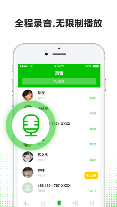 万能通话录音是一款国际网络电话&高品质通话录音软件,音质清晰,可拨打全球超过50个国家,低话费,高音质!同时可录制通话内容,录音时间无限制,安全可靠,高效管理录音,支持快速查找,并随时分享录音。万能通话录音,你生活和工作中的好帮手。 【产品介绍】 万能通话录音是一款可以支持通话录制&录音文件保存的通话录音软件。主要功能包括:本地&国际长途通话、匿名(隐藏号码)拨打、苹果电话录音、录音文件分享等,省时省力又省钱,简单高效。 使用万能通话录音,无需手机SIM卡,无论iPhone、iPad还是iTouch,都可以任意拨打全球50余个国家的号码,一键拨号,天涯海角零距离,首次注册还送话费哦! 录音质量清晰可靠,录音长度任意无限制。随时播放录音文件,不限时长,不收取任何额外费用。多途径分享录音文件,随时转发上传,让你一键备份。管理界面简洁明了,真正实现高效录音,轻松分享。 使用匿名号码拨打电话,保护个人隐私,防止真实号码泄露,防止电话骚扰。 点击下载,开始体验万能通话录音提供的通话录音&国际电话服务吧! 【产品特点】 * 无需sim电话卡,网络电话随时拨打,iPhone、iPad、iTouch都能用 * 真正质感设计,界面简洁清爽不失人性化 * 国际电话,超低费率,首次注册送话费 * 高清音质,无限制通话时常 * 播放录音无限制,不收取任何额外费用 * 一键导入通讯录,轻松拨号 * 50+国家任你打,国际电话竟然比国内长途还便宜 * 多种方式分享录音,一键上传备份,安全又方便 * 录音文件带有备忘录,随时编辑,存储信息 如果有任何问题或意见,欢迎联系我们! 联系方式: Facebook: https://www.facebook.com/iOS-Call-Recorder-1825371231051979/ Email: iosfeedback@mavericksmobile.com FAQ&Support : https://ioscallrecorder.uservoice.com/