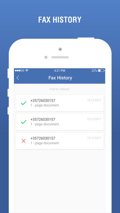 使用你的 iPhone 或 iPad 发送传真。只需使用相机扫描文档或从 iCloud、Dropbox、Google Drive 或你的照片中导入,然后将其作为传真发送。 功能: •使用相机扫描文档并使其变清晰。 •从 iCloud、电子邮件、Dropbox、Google Drive 或任何其他应用程序导入 .pdf 文档 •内置扫描仪进行校正,将文件转换为黑白。 •将多个页面合并为一个传真 •发送前预览文件。 •现买现付。购买积分并根据需要发送传真。 •查看已发送或发送失败的传真的完整历史记录。 •135 多个国际目的地,你的口袋里有一台全球传真机。