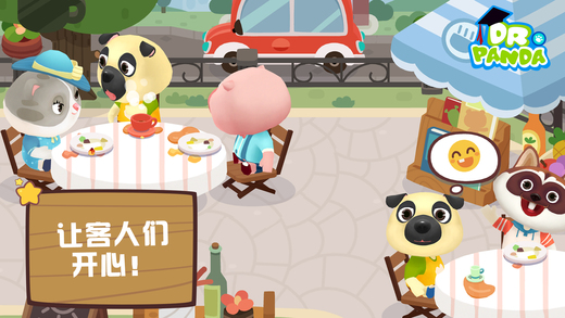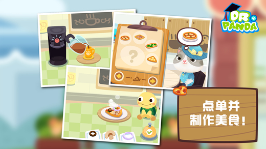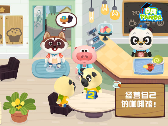 熊猫博士咖啡馆开业啦! *微信搜索“熊猫博士”,关注官方微信 欢迎光临咖啡馆!为客人们点单,尝试制作多达25款食物和饮品!在熊猫博士咖啡馆,你将为客人们带来最棒的咖啡馆体验和无尽的乐趣。不要让客人们久等哦,赶紧送上美食吧! 开始忙碌工作! 引导客人们入座,记住他们的点单,同时准备咖啡、蛋糕和披萨等等!此外,还要抓紧清理餐桌,洗刷盘子,为新客人腾出空间。 让客人们开心! 送上一只额外的蛋糕或曲奇饼干,让客人们心满意足!营造自己独特的咖啡馆氛围,看着客人们谈笑风生。 收集各种食谱! 有越多满意的客人,你就可以解锁并制作越多的食物和饮品。你还可以创制自己的菜品,或尝试在披萨上铺满美味配料和各式小吃! ***注意:运行游戏需要iPad 2或更新,iPhone 5或更新,iPod 5代或更新*** 游戏特色: ●照顾客人们,让他们开心! ●收集多达25款食物和饮品的食谱! ●发挥创意,定制美食。 ●没有时间限制! ●观察每位客人的有趣动画! ●专为儿童设计! 隐私策略 作为儿童游戏的设计者,我们非常清楚个人隐私在这个数字化的时代有多么的重要。您可以从这里阅读我们的隐私策略:http://www.drpanda.com/privacy 关于熊猫博士 熊猫博士(Dr. Panda) 为孩子们提供最优质的儿童教育游戏,让他们在开心玩耍的过程中学到知识,认识世界。我们的游戏内杜绝任何广告,让家长放心是我们的首要责任。 如果您想了解更多关于我们或对我们是如何为孩子们设计游戏感兴趣的话,请访问我们的网站www.drpanda.com/about或中文域名www.熊猫博士.com。发电子邮件到 support@drpanda.com 或联系我们的 官方微信: drpandagames 新浪微博: weibo.com/drpandagames Facebook :facebook.com/drpandagames Twitter:twitter.com/drpandagames