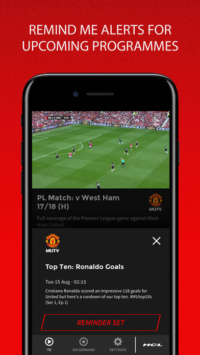 INTRODUCING THE MUTV APP… Your club, your channel - watch your favourite Manchester United programmes live and on demand with the MUTV app. CONTENT INCLUDES: - MATCH DAY: Follow the action with interviews, expert analysis and live radio coverage for every Manchester United game in the Premier League, Champions League, FA Cup and EFL Cup. - FIRST TEAM ACTION: Watch all the action from every first team fixture with match highlights and full match replays. - TOUR LIVE: Get a first look at the squad and new signings in action ahead of the season, with live coverage of pre-season games. - RESERVES AND ACADEMY LIVE: Watch the stars of tomorrow with exclusively live coverage of Reserve and Academy fixtures. - BEHIND THE SCENES: Get closer to your heroes including Pogba, Rashford, Lukaku and co. with exclusive MUTV access and interviews at Old Trafford and the Aon Training Complex. - MOURINHO’S PRESS CONFERENCE: Find out Jose Mourinho’s view ahead of United fixtures with exclusively live coverage of every Manager’s Press Conference. - AWARD-WINNING FILMS AND DOCUMENTARIES: Access ground-breaking series and documentaries featuring the manager, players, legends and famous fans, including When the Floodlights Fade, Sporting Reds, Paddy Meets and Andy Goldstein’s Celebrity Reds. APP FEATURES: - 24/7 LIVE STREAM: Manchester United content available all day, every day, with the live MUTV stream. - VIDEO ON DEMAND: Catch up on your favourite Man Utd programmes anytime with our on demand content. - REMIND ME ALERTS: Make sure you never miss your favourite content by setting remind me alerts for upcoming programmes. - PROGRAMME GUIDE: Check out the full MUTV schedule for the next seven days. - CAST TO TV: Watch any live stream or video on demand content on your TV using the Chromecast and AirPlay functions. - FULL SCREEN VIEWING: Simply rotate your device to watch any content in full screen mode. Get Closer -- Full Access to Premium Content: - You can choose to subscribe to MUTV with an auto-renewing subscription. - Monthly subscription packages are available with prices ranging from $1.49 - $4.99. - Payment will be charged to your iTunes Account at confirmation of purchase. - Subscription automatically renews unless auto-renew is turned off at least 24-hours before the end of the current period. - Your iTunes account will be charged for renewal within 24-hours prior to the end of the current period, and charged at the renewal prices stated above. - Subscriptions may be managed by the user and auto-renewal may be turned off by going to your Account Settings after purchase. - No cancellation of the current subscription is allowed during an active subscription period. - Any unused portion of a free trial period, if offered, will be forfeited when the user purchases a subscription to that publication. -- Download and use of this app is subject to app terms and conditions. - privacy policy: http://www.manutd.com/privacy - terms and conditions: http://apps.manutd.com/eula