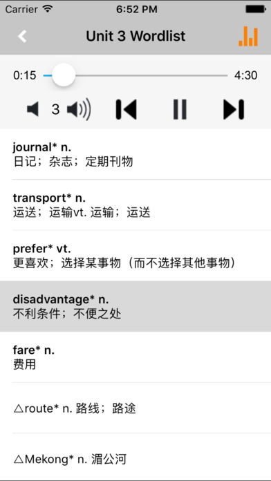 *全套原版录音和教材完全同步,助您成为英语大明星。 *根据课本配套,此应用为人教版高中英语必修1完全最新版。 *涵盖全部内容,包括全部课程对话和常用句子、单词列表、复习章节等。 *操作简便、携带方便,永远告别磁带和光盘。 【新梦想】教育应用系列完全同步教材制作,内容完全一致,您可以使用它来进行课文学习,播放教材配套音频,发音纯正地道,寓教于乐,让学习更高效和有趣。 该应用界面简洁操作简单,让孩子在舒适的环境下学习,能点,能读,更能说,是中学生的好老师、好家长。 功能特色 ■中英文双语对照,同步语音,准确清晰。 ■内容与录音质量放心,地道纯正、原汁源味。 ■语音播放灵活,即点即学,跟读模仿随时随地。 ■完全同步教材制作,内容完全一致。 ■后台播放人性化,锁屏状态可随身听读。 ■界面简单大方,意图明了,功能实用,操作方便。 用我们的责任心、爱心、细心地去点燃学生们的梦想,让有梦想的孩子们慢慢的变化!学习成绩逐步提高,慢慢的,他们又有了新梦想,如此反复...... 让中学生中英文双语对照,发音准确清晰,是中学生自学的好老师,把家长从繁琐的辅导解答中解放出来! 【新梦想】教育应用系列,快乐中学习,轻松点一点,英语真容易! —【新梦想】教育应用系列— 适用于多种教学场景,您可以更加便捷地进行碎片化学习,期待您的使用! 致力于为中国K12教育提供最优秀的互联网教育软件! 新梦想乐园,伴随青少年健康快乐的成长! *****软件功能***** 1.通用应用,同时支持iPhone,iPod touch,iPad设备 2.可以自动顺序播放功能 3.可以自动记录播放位置,不用担心下次找不到听到哪 4.支持离线播放,即使不联网也一样听,到哪都不怕 5.支持手动拖拽前进、后退播放 6.在兼顾软件容量以及更多课程的情况下,我们最大限度保证音频的高质量,每个有声读物片段都是经过我们精选和亲测 7.最最重要的功能,可以拖动字幕定位,音频随之定位 本应用与《普通高中课程标准实验教科书人教版高中英语必修1》课本同步 新版目录: Unit 1 Friendship Unit 2 English around the world Unit 3 Travel journal Unit 4 Earthquakes Unit 5 Nelson Mandela - a modern hero Workbook Unit 1 Friendship Unit 2 English around the world Unit 3 Travel journal Unit 4 Earthquakes Unit 5 Nelson Mandela - a modern hero Appendices Notes to the texts Grammar Words and expressions in each unit Vocabulary Irregular verbs Changes in international phonetic symbols for English