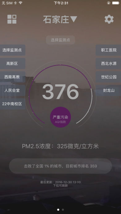 还在因雾霾困扰吗?还在因为空气质量担心吗?空气质量助手支持全国多个市县的实时天气情况和空气质量数据查询,是您随身的空气专家。 ·精准定位,一键获取此时此地的天气状况和空气质量数据 ·支持全国范围城镇查询,是您出差、旅游的不可或缺的好帮手 ·空气质量及污染级别实时查询,主要污染物及了解,提前做好防护措施 ·空气污染指数,PM 2.5,全国空气污染指数排名,足不出户,尽知天下空气。 健康出行,轻松“掌”握! 体贴的健康建议:根据当前的污染状况, 向您给出健康建议,是否适合户外活动、是否需要戴口罩。在室内、户外运动、交通出行应该做怎样的防护措施,我们将为您详细解读。 PM2.5除了本身对人体呼吸系统具有刺激作用、致敏作用及其它有害作用外,同时它还可能作为携带细菌微生物、病毒和致癌物的载体侵入人体肺部,严重危害人体健康,需要做好预防措施