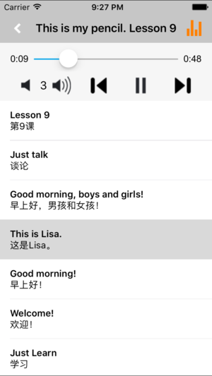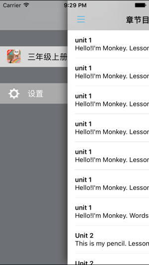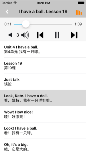 *全套原版录音和教材完全同步,助您成为英语大明星。 *根据课本配套,此应用为人教版精通小学英语三年级上册完全最新版。 *涵盖全部内容,包括全部课程对话和常用句子、单词列表、复习章节等。 *操作简便、携带方便,永远告别磁带和光盘。 【新梦想】教育应用系列完全同步教材制作,内容完全一致,您可以使用它来进行课文学习,播放教材配套音频,发音纯正地道,寓教于乐,让学习更高效和有趣。 该应用界面简洁操作简单,让孩子在舒适的环境下学习,能点,能读,更能说,是小朋友的好老师、好家长。 功能特色 ■中英文双语对照,同步语音,准确清晰。 ■内容与录音质量放心,地道纯正、原汁源味。 ■语音播放灵活,即点即学,跟…