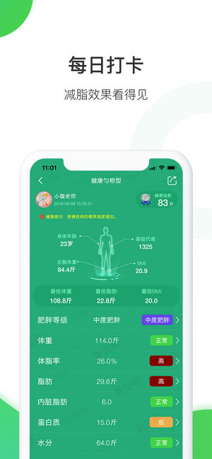 怕胖 怕老 用变啦 350万人同平台减脂,等你加入... 变啦APP是一款专注于帮助用户瘦身减脂的手机应用,根据用户的身体特质量身定制瘦身计划,全面分析身体数据,帮助用户快速健康减肥。同时变啦APP也是变啦智能减脂技术的一份子,变啦健康减脂方案是一套健康减脂的整体解决方案。它包含了变啦智能健康减脂技术、健康营养配餐和体脂管理师三大体系。乒乓球奥运冠军马琳先生使用变啦健康减脂方案减脂31斤,并为之代言。 变啦APP可以轻松连接体脂秤,测量详细数据实时展示。只用10秒钟,它就能告诉您关于身体的多种参数:体重、体脂率、BMI、身体年龄、身体状态指数、基础代谢率、蛋白质、水分、肌肉、骨骼肌、骨质、脂肪…