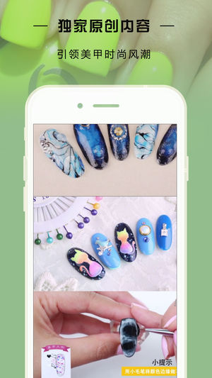 美甲,爱美女性都在意的装扮,修长的手指配上不同颜色的指尖点缀,让每一次伸手,都能吸引众人的眼球。 美甲教程App,最专业的美甲视频教学,独家求教程功能,美甲大咖专业指导,专注于美甲手艺人的技术交流,给在美甲店不知道做什么款式的女性提供千百款参考,还有真人视频教学,跟着做,你也能自己在家DIY出时尚漂亮的美甲提,诸多实用小技巧让你爱上美甲带来的乐趣。
