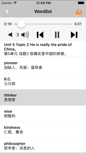 *全套原版录音和教材完全同步,助您成为英语大明星。 *根据课本配套,此应用为北京仁爱版初中英语九年级上册、下册完全最新版。 *涵盖全部内容,包括全部课程对话和常用句子、单词列表、复习章节等。 *操作简便、携带方便,永远告别磁带和光盘。 【新梦想】教育应用系列完全同步教材制作,内容完全一致,您可以使用它来进行课文学习,播放教材配套音频,发音纯正地道,寓教于乐,让学习更高效和有趣。 该应用界面简洁操作简单,让孩子在舒适的环境下学习,能点,能读,更能说,是小朋友的好老师、好家长。 功能特色 ■中英文双语对照,同步语音,准确清晰。 ■内容与录音质量放心,地道纯正、原汁源味。 ■语音播放灵活,即点即…